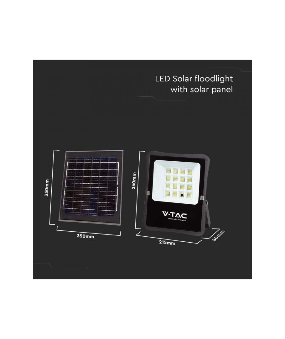 V-Tac 12W LED Zonnecel schijnwerper - Zwart, een praktische en energiezuinige oplossing voor buitenverlichting. Deze schijnwerper bevat een zonnecel en afstandsbediening en is ontworpen om alle weersomstandigheden te weerstaan met zijn IP65-classificatie. Hij heeft ook een handige timerfunctie waarmee je hem automatisch kunt laten uitschakelen na een bepaalde periode. Met een volledige oplaadtijd van slechts 4 uur kan deze schijnwerper 8 uur licht leveren. Hij wordt ook geleverd met een kabel van 5 meter, die je flexibiliteit geeft om hem te plaatsen waar je hem nodig hebt.