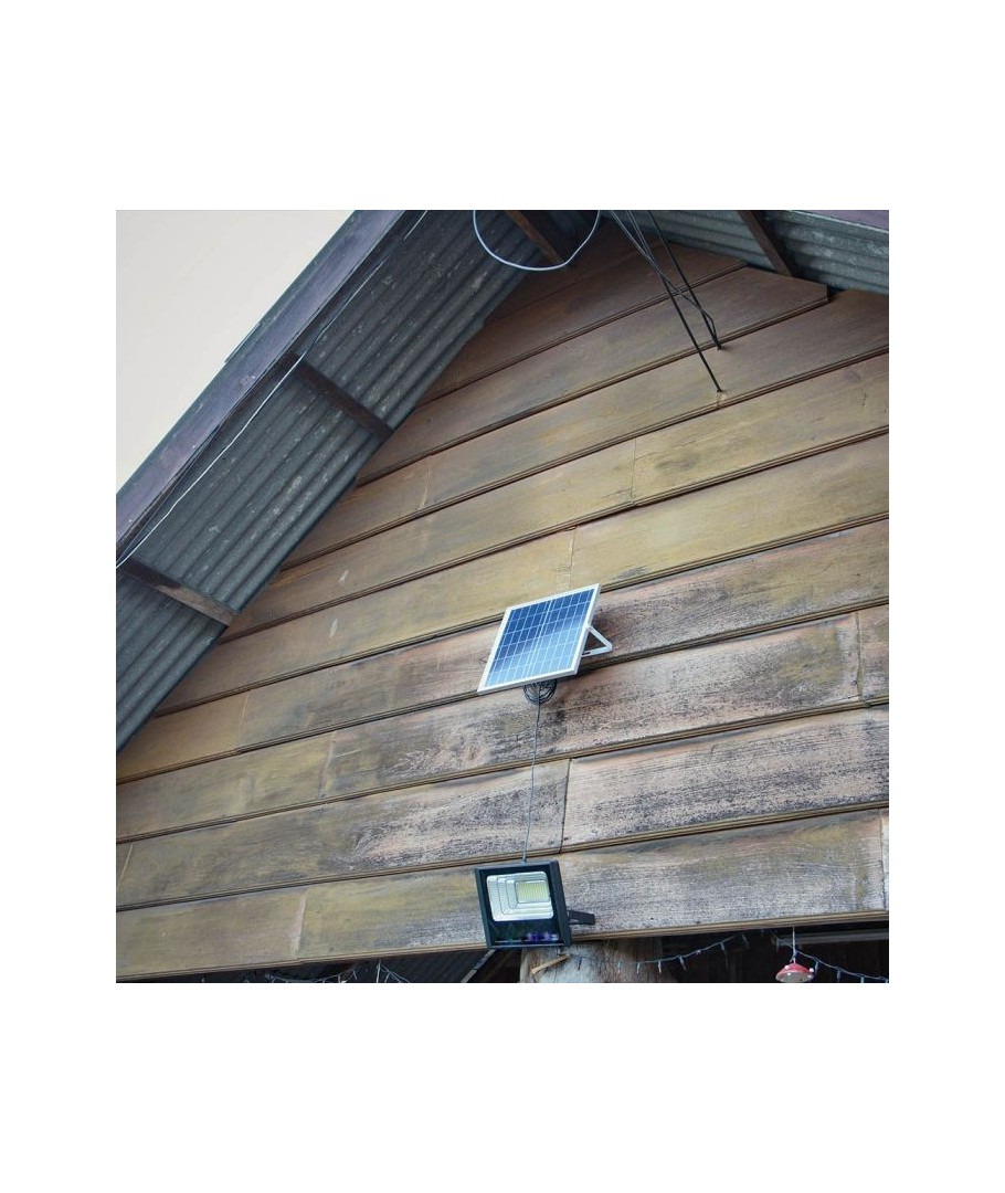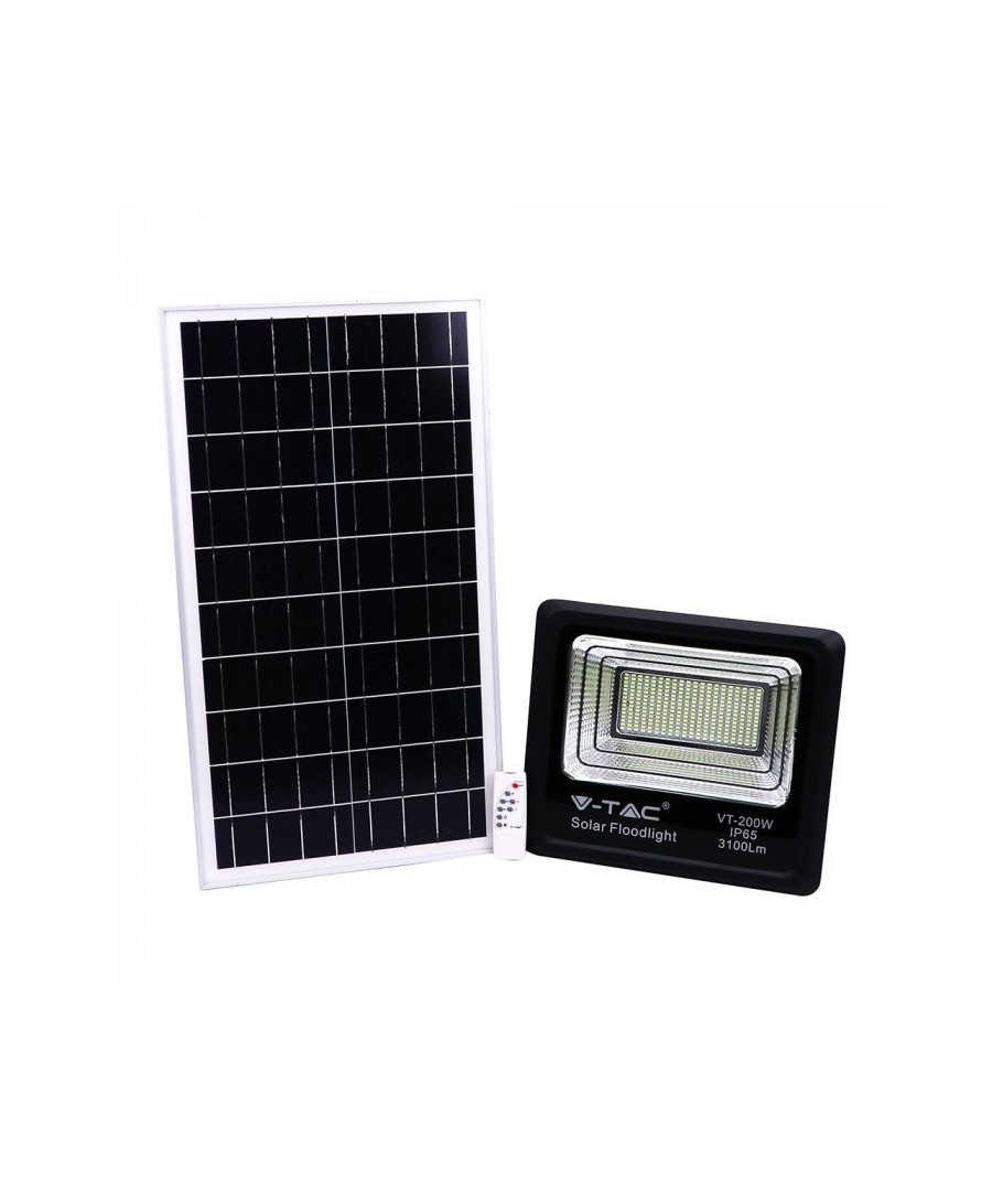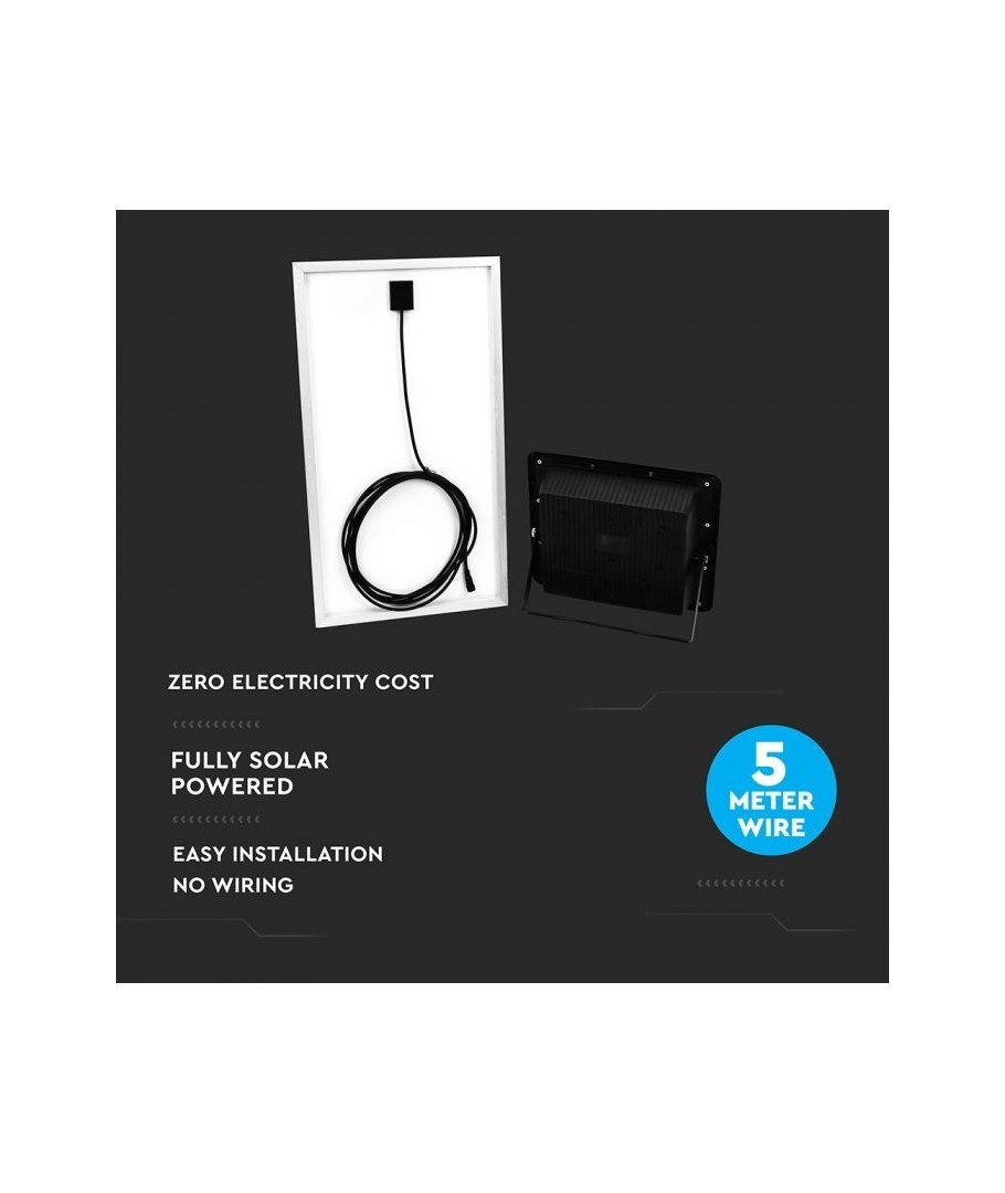 V-Tac 40W LED Zonnecel schijnwerper - Zwart, een praktische en energiezuinige oplossing voor buitenverlichting. Deze schijnwerper bevat een zonnepaneel en afstandsbediening en is ontworpen om alle weersomstandigheden te weerstaan met zijn IP65-classificatie. Hij heeft ook een handige timerfunctie waarmee je hem automatisch kunt laten uitschakelen na een bepaalde periode. Met een volledige oplaadtijd van slechts 4 uur kan deze schijnwerper 8 uur licht leveren. Hij wordt ook geleverd met een 5 meter lange kabel, die je flexibiliteit geeft om hem te plaatsen waar je hem nodig hebt.