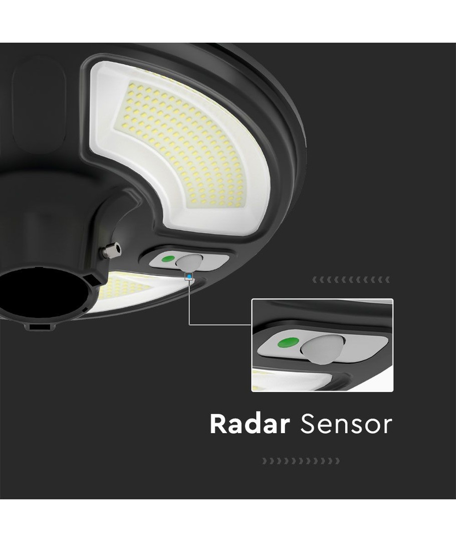| Aanvullende opmerkingen | Battery: LiFePO4 3.2V 32650, 25AH. Charging time: 6-8 Hours. Working time: 10-12 Hours. Sensor type: Radar Sensor. Sensor angle: 120°. Sensor distance: |