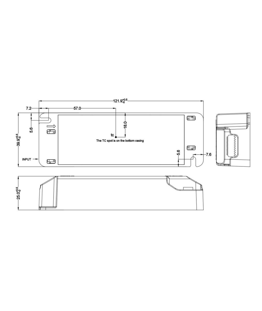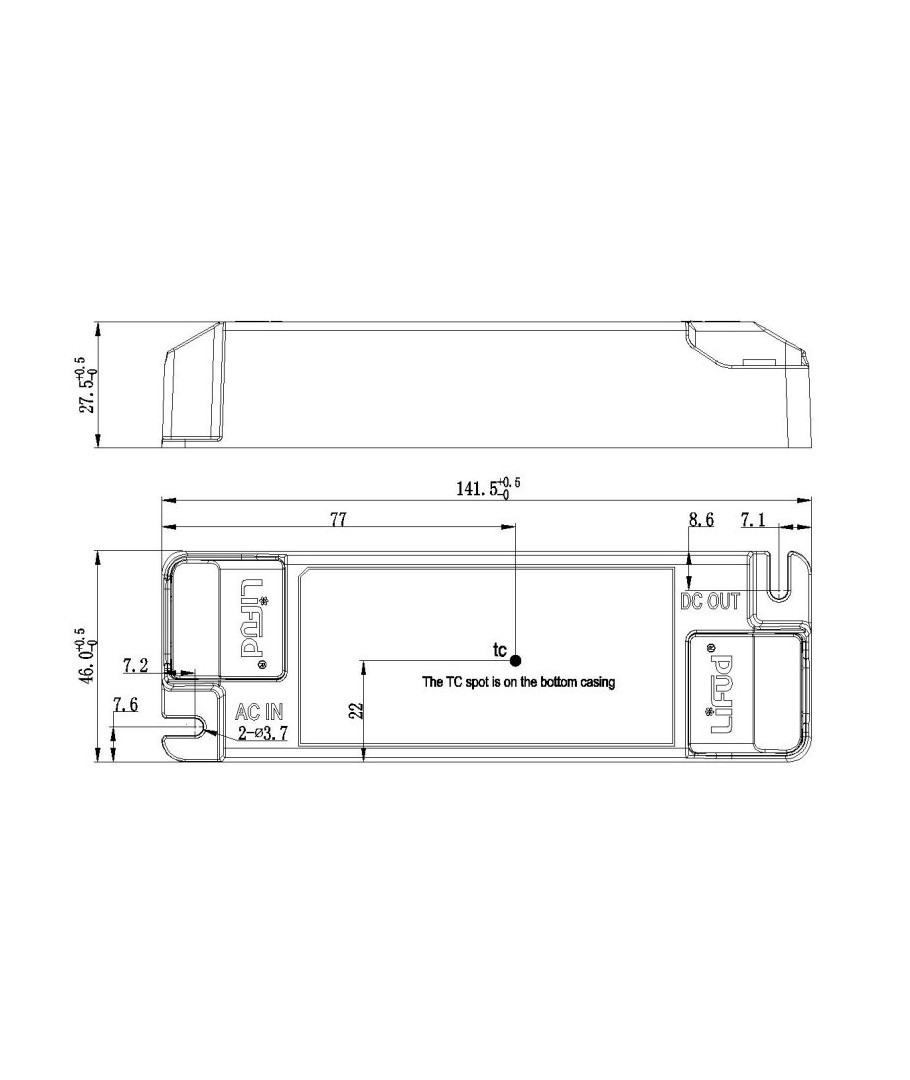 Deze LED driver heeft een vermogen van 20W en wordt rechtstreeks aangesloten op een 230V voeding. Hij ondersteunt een instelbare stroom van 250-500mA met een uitgangsspanning van 9-42V. Met afmetingen van 40 x 25 x 122 mm is deze compacte driver gemakkelijk te integreren in diverse installaties.
