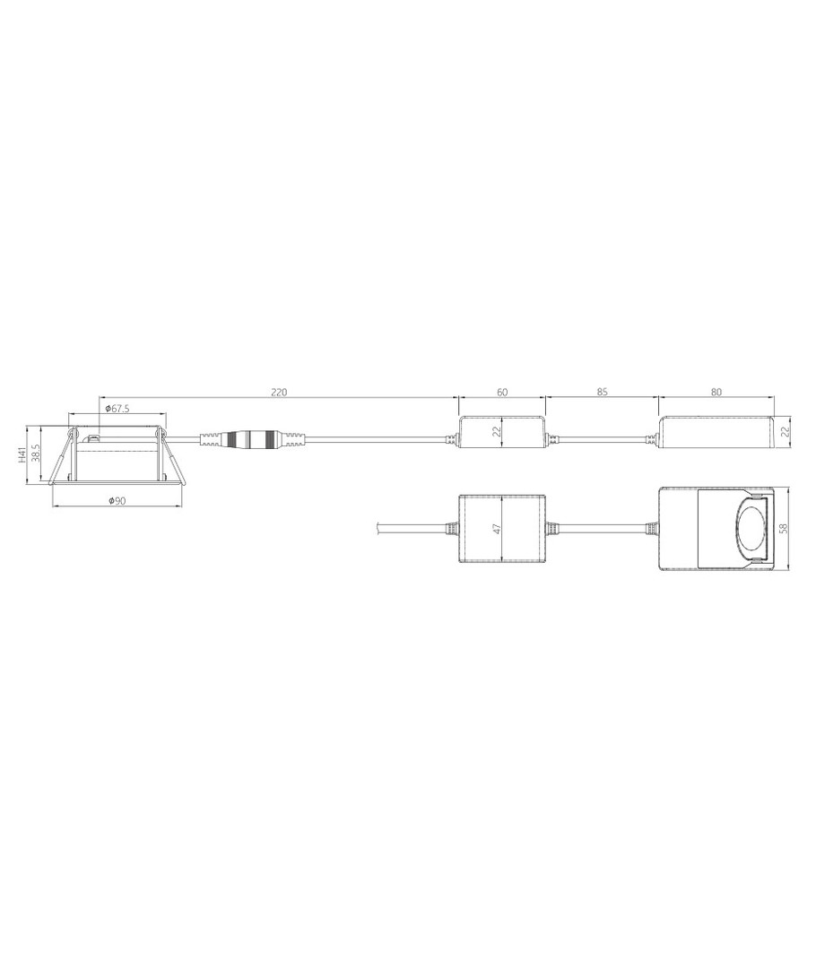 Compleet set inclusief driver en doos voor doorlusverbinding.