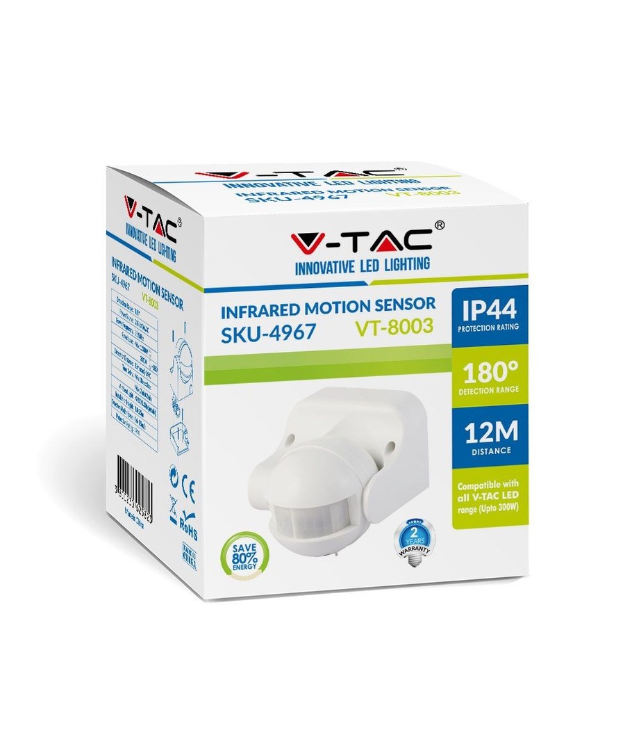 Sensorafstand tot 12 meter (bij temperaturen onder 24 graden Celsius en montagehoogte tussen 1,8 m en 2,5 m).