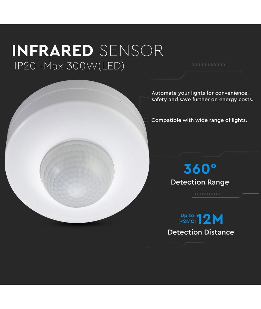 Ontdek een effectieve oplossing voor intelligente lichtregeling met onze Plafondsensor met handmatige override, ontworpen voor binnengebruik met een maximale belasting van 300W.