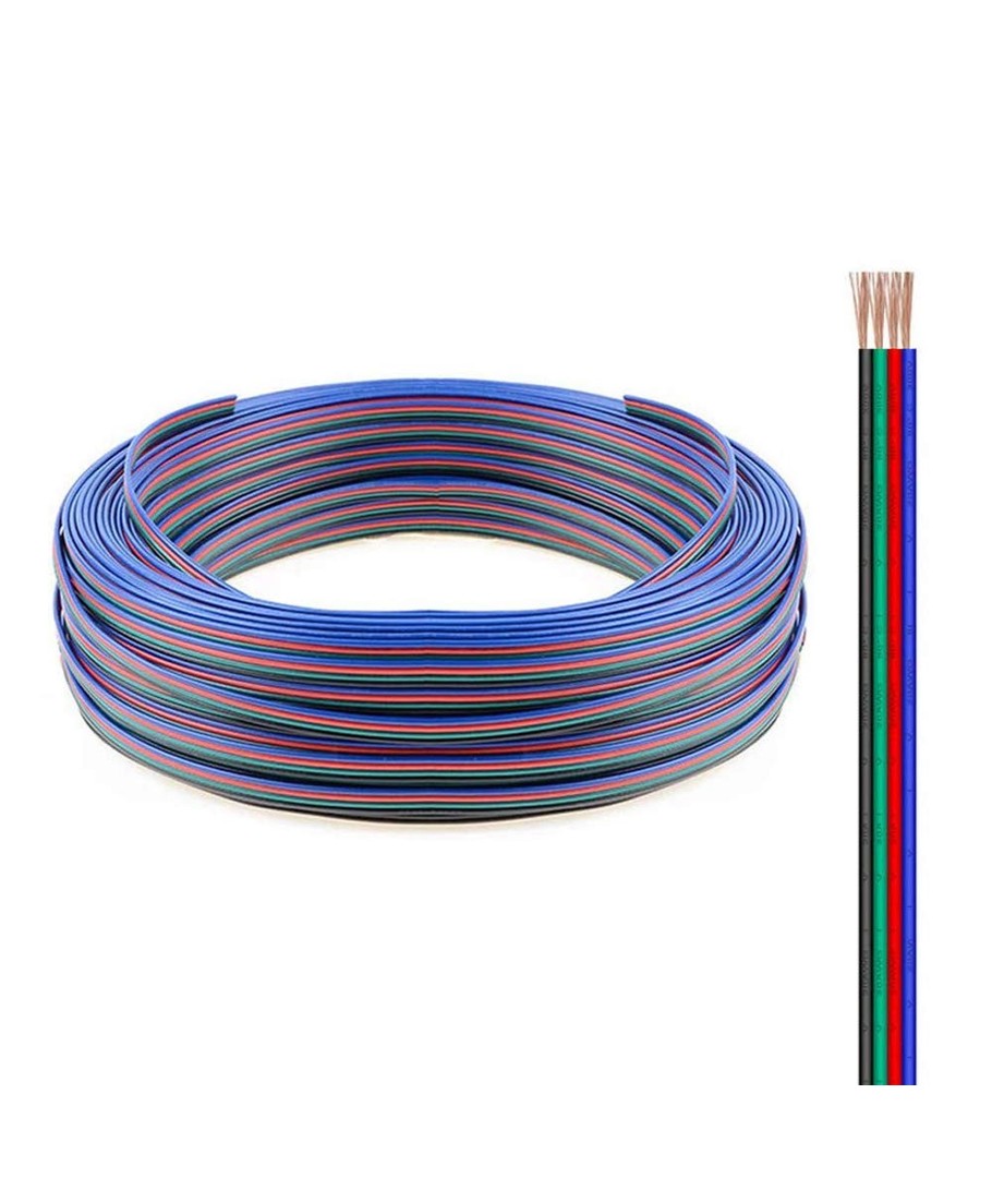 Flexibele kabel op rollen van 100 meter, geschikt voor RGB-ledstrips.