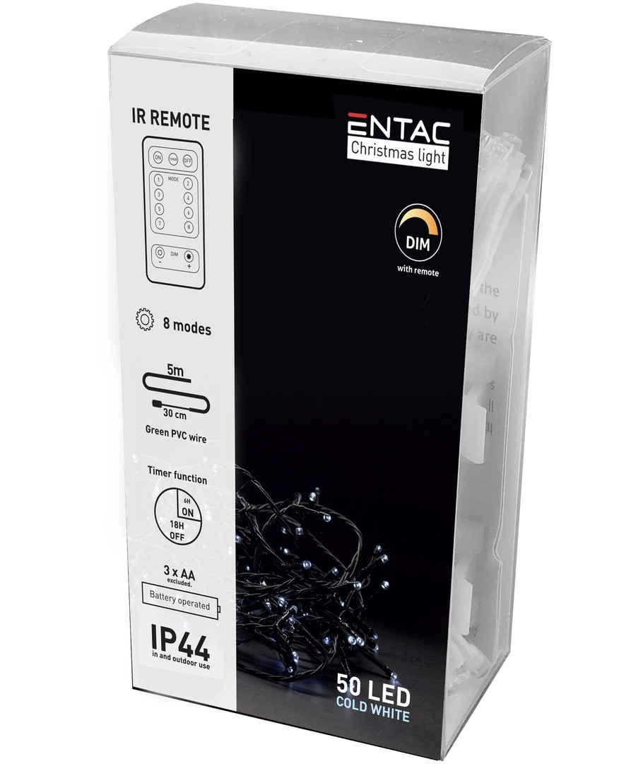 50 LED, IP44 buiten, IR afstandsbediening, timer, batterij