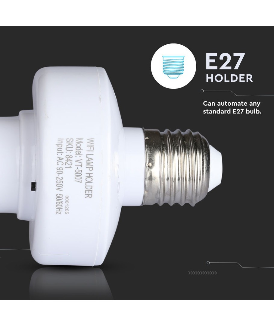 E27 Wi-Fi smart fitting - Max 20W, werkt met Alexa en Google Home, wit V-TAC Uitklappen