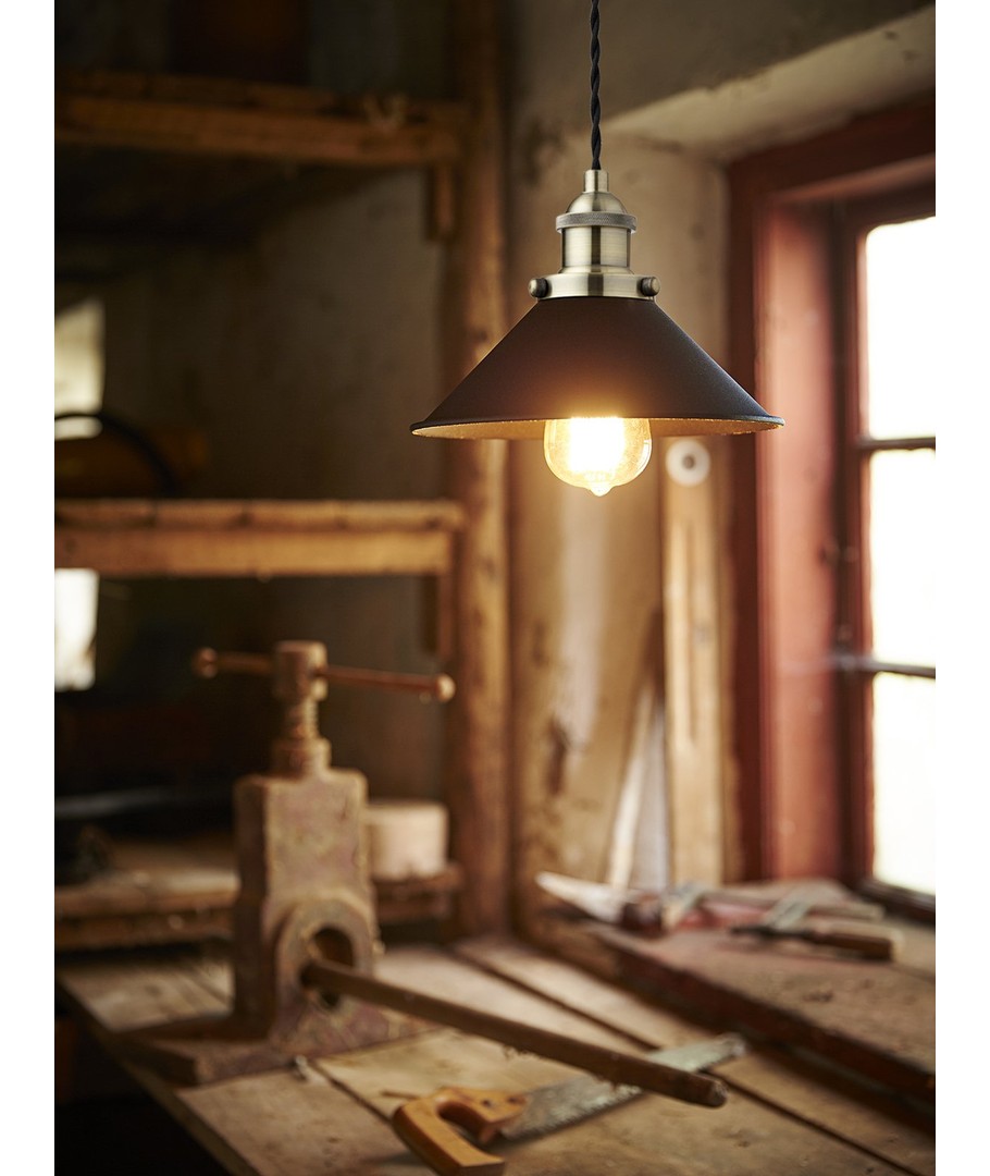 Wordt geleverd met 2,5 m zwarte gedraaide stoffen kabel en een mooie baldakijn voor bevestiging aan het plafond. Je kunt de lengte van de kabel aanpassen via de baldakijn, zodat de kabel zo kort als gewenst kan zijn.