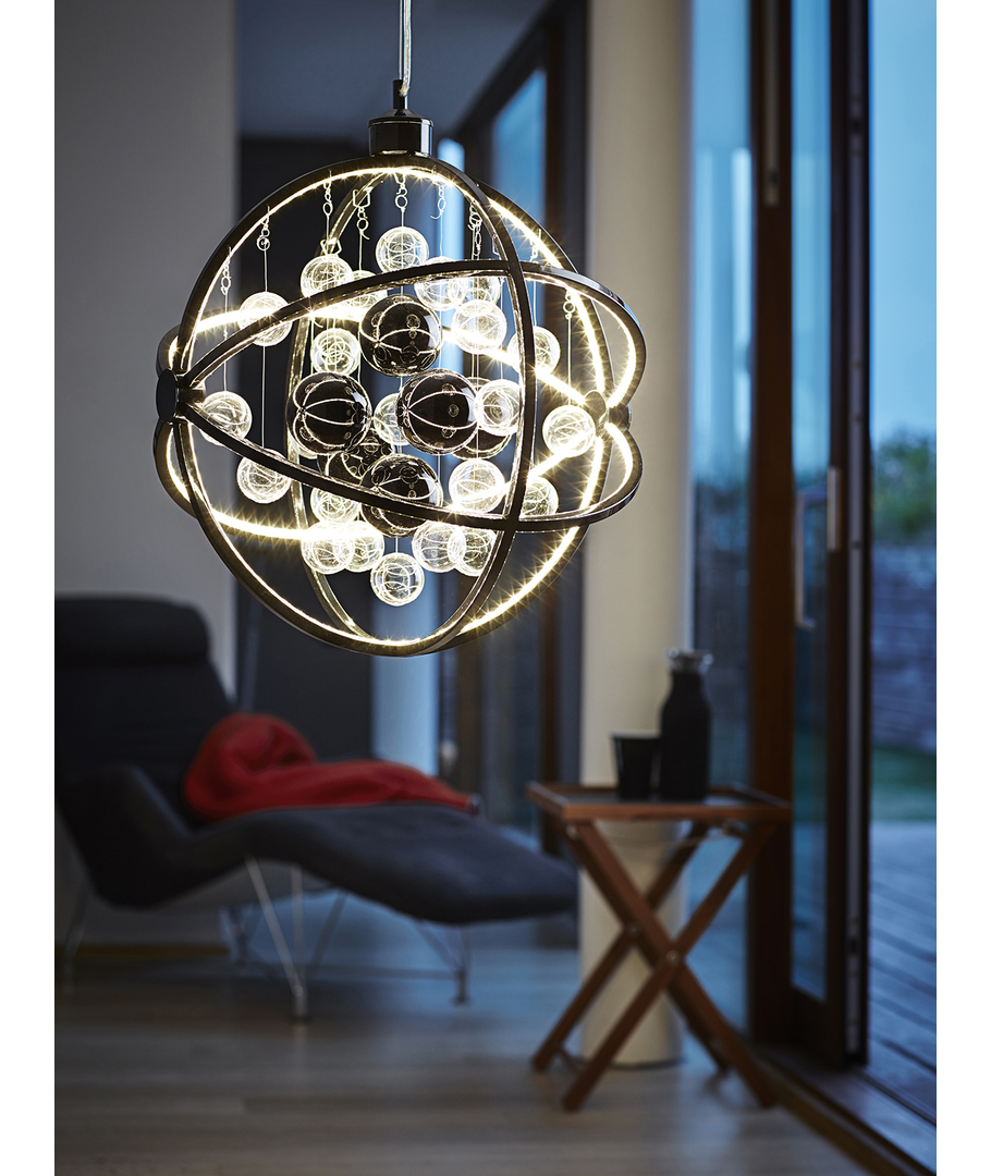 De lamp is voorzien van LED Strips rondom de lamp die het licht via de glazen bollen de kamer in reflecteren. Echt een spannende en ongelooflijk mooie lamp.