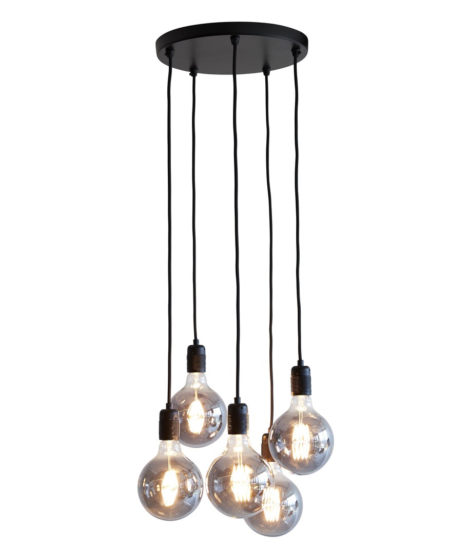 Sier uw huis met een cluster van 5 lampen naar keuze met deze hanglamp van Nielsen Light, met 5 stuks E27 fittingen in het zwart.