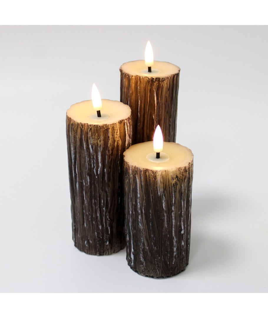 Creëer een gezellige en warme sfeer in uw huis met onze LED blokkaarsen met houtlook, die elegantie en veiligheid combineren met een realistisch vlam effect.