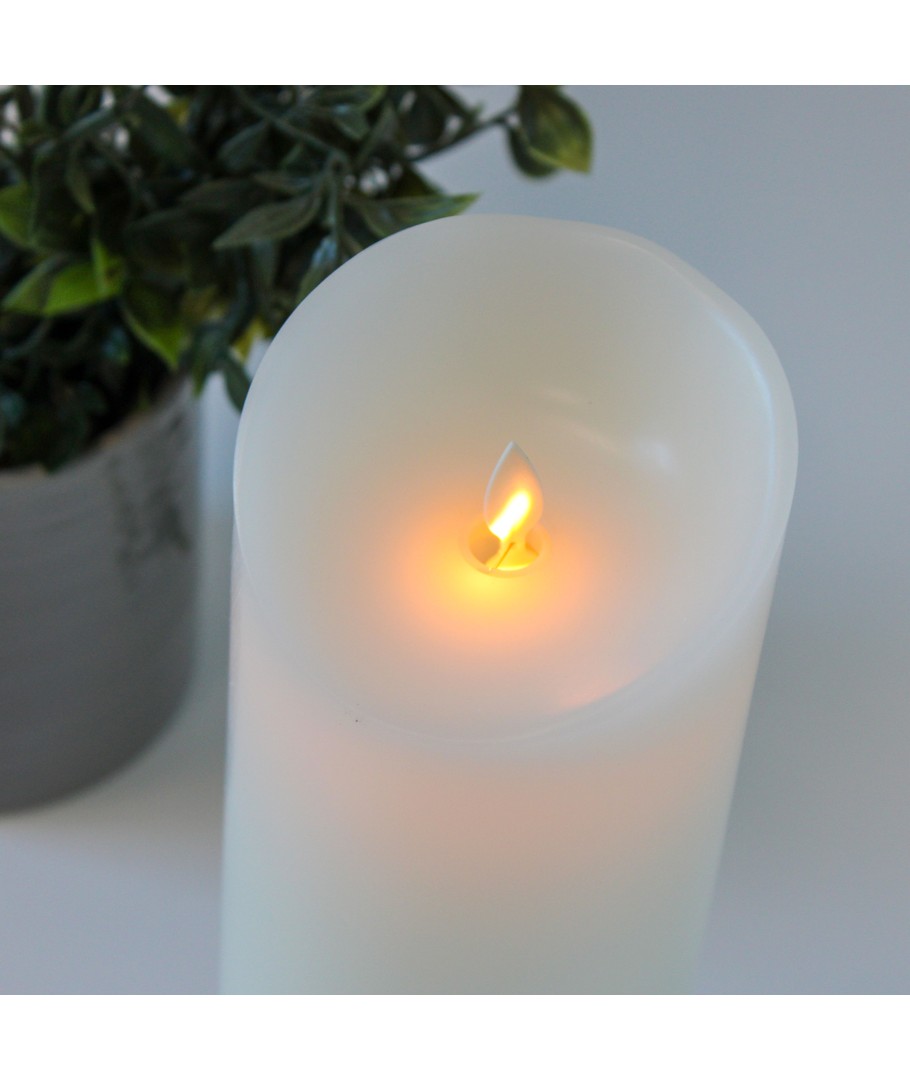 LED XL Stompkaars 30cm hoog, vlameffect, wit - Ø10cm, 30cm hoog, werkt m. afstandsbediening, timer, echte was Uitklappen