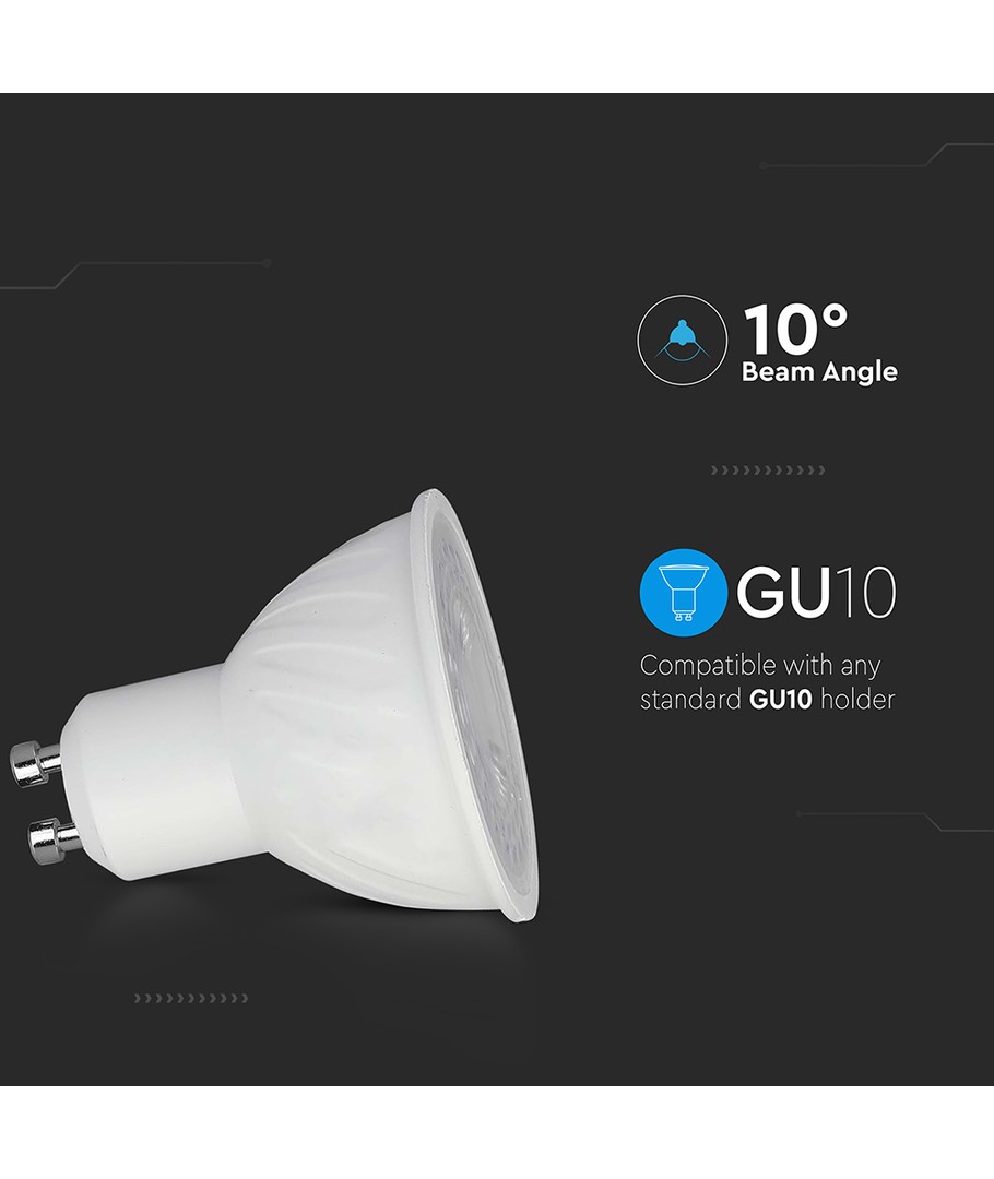 De spotlight levert een lichtsterkte van 445 lumen en heeft een hoge lichtkwaliteit met een RA-waarde van 80-85. Dit zorgt voor natuurlijk licht dat kleuren nauwkeurig weergeeft, ideaal voor ruimtes waar precies licht belangrijk is. Met zijn gefocuste lichtstraal van 10 graden is het perfect voor taken die geconcentreerde verlichting vereisen.