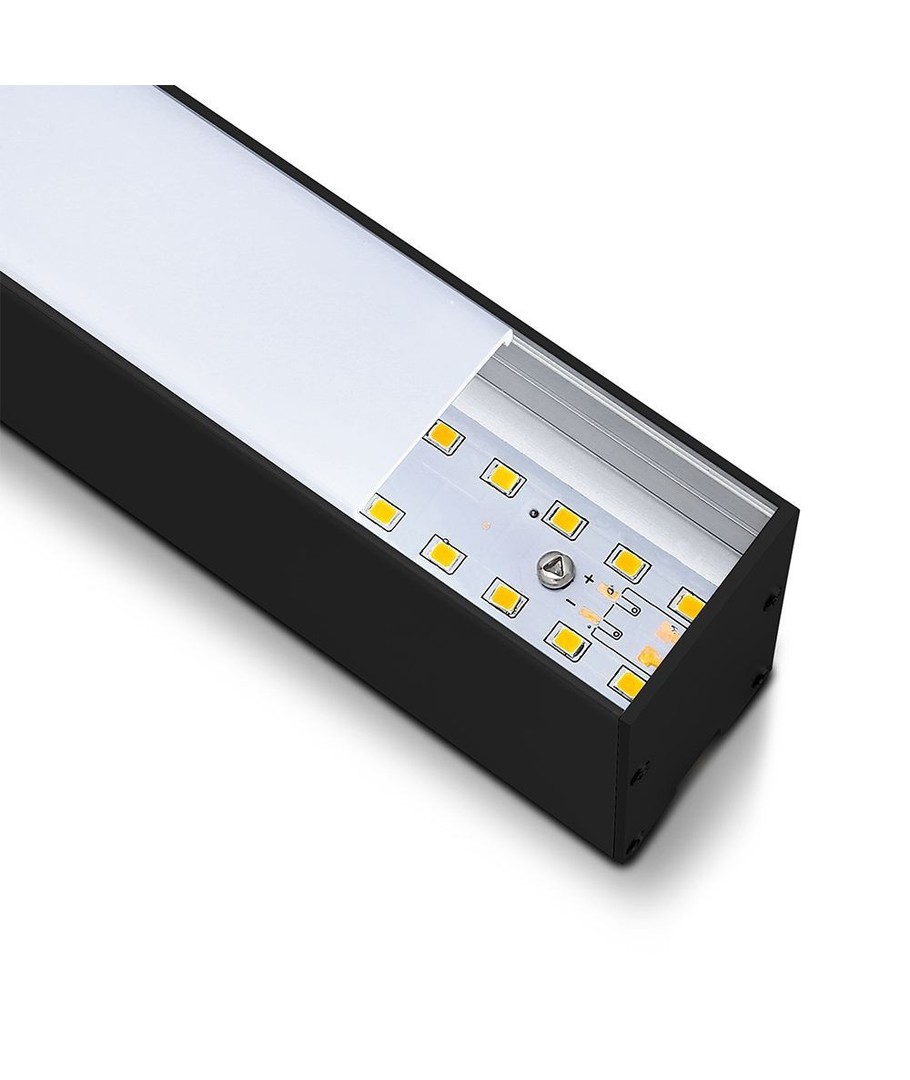 Mooi en stijlvol hangend plafondarmatuur in zwart aluminium met ingebouwde LED.