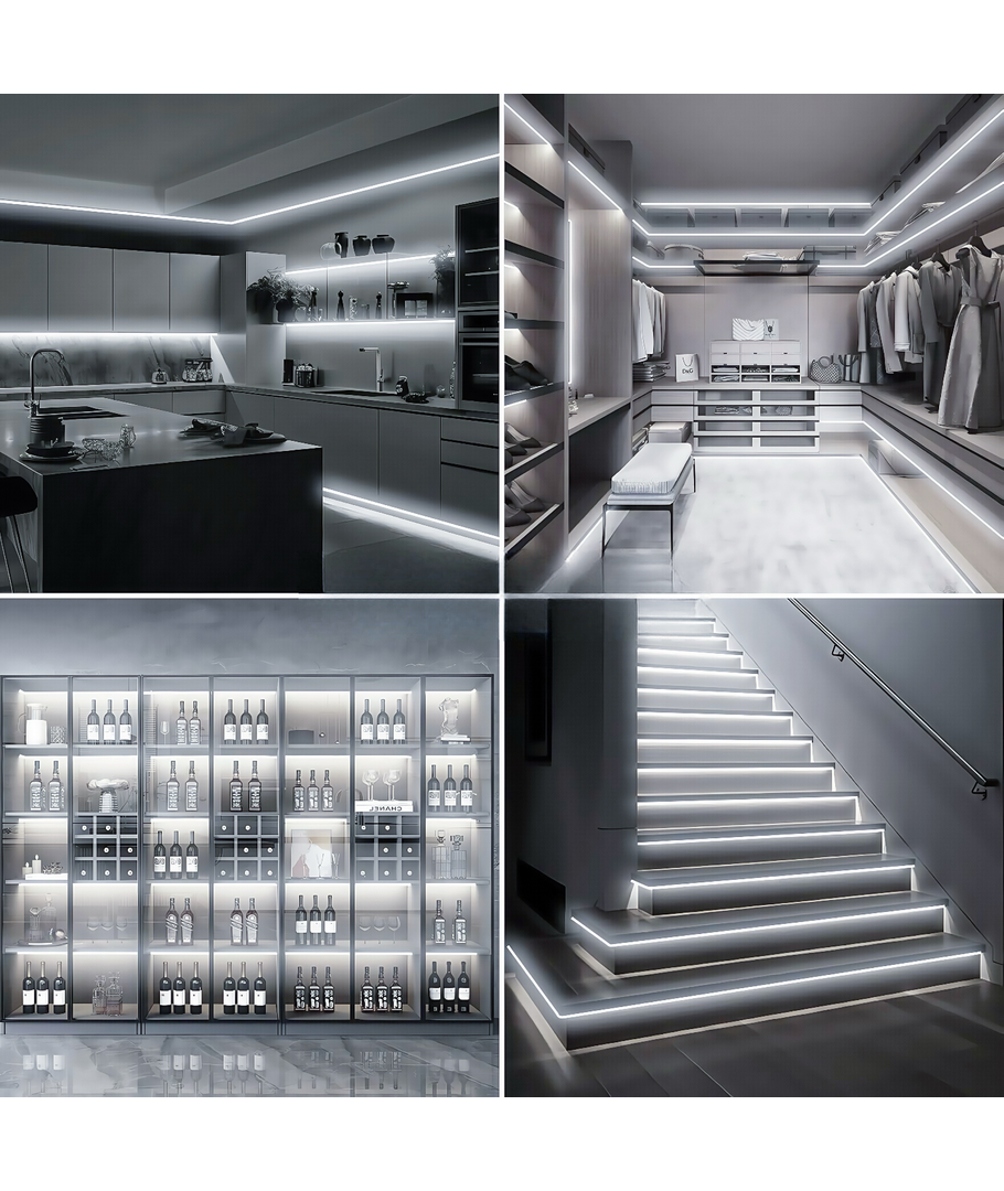 Ontworpen met het CLIP-ON systeem is de installatie snel en eenvoudig. Sluit de LED-strips aan op een 24V voeding en u bent klaar om elke ruimte te verlichten. Met de mogelijkheid om het licht te dimmen, kunt u de sfeer aanpassen aan uw wensen en stemming.