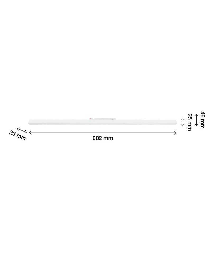 Met afmetingen van 23 x 602 x 42 mm past de lichtrail gemakkelijk in verschillende interieurconcepten, van modern tot klassiek design. Het elegante witte design maakt het eenvoudig om deze lichtrail in elk interieur te integreren. De lichtrail is ontworpen voor aansluiting op een 48V voeding, wat zorgt voor een eenvoudige en veilige installatie.