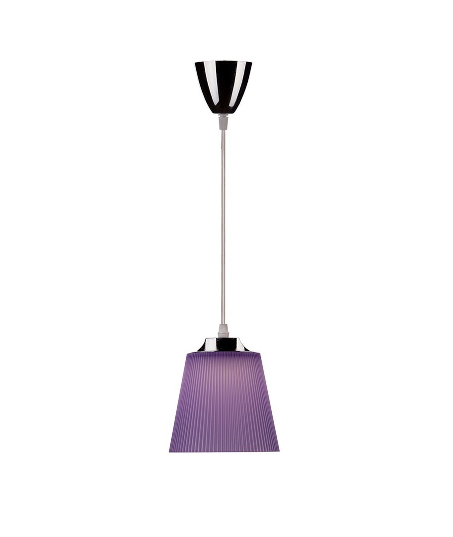 7W plafondlamp in chroom met een paarse kap, die zorgt voor moderne verlichting in verschillende ruimtes.
