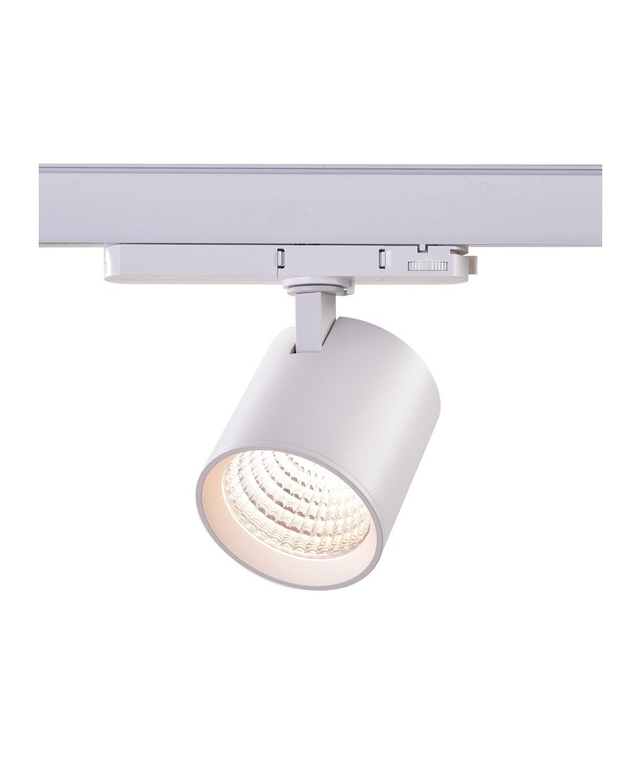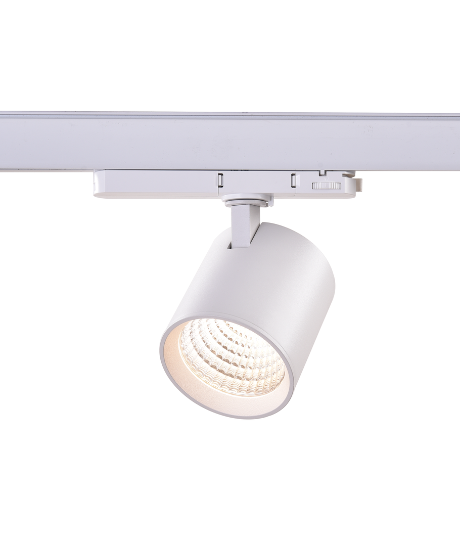 Elegante LED-railspot in een wit huis voor 3-fase railsysteem met ingebouwde driver in de spot zelf.