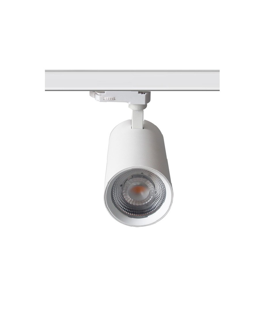 Elegante LED-spots voor rails in een wit huis voor 3-fase railsysteem met ingebouwde driver in de spot zelf.