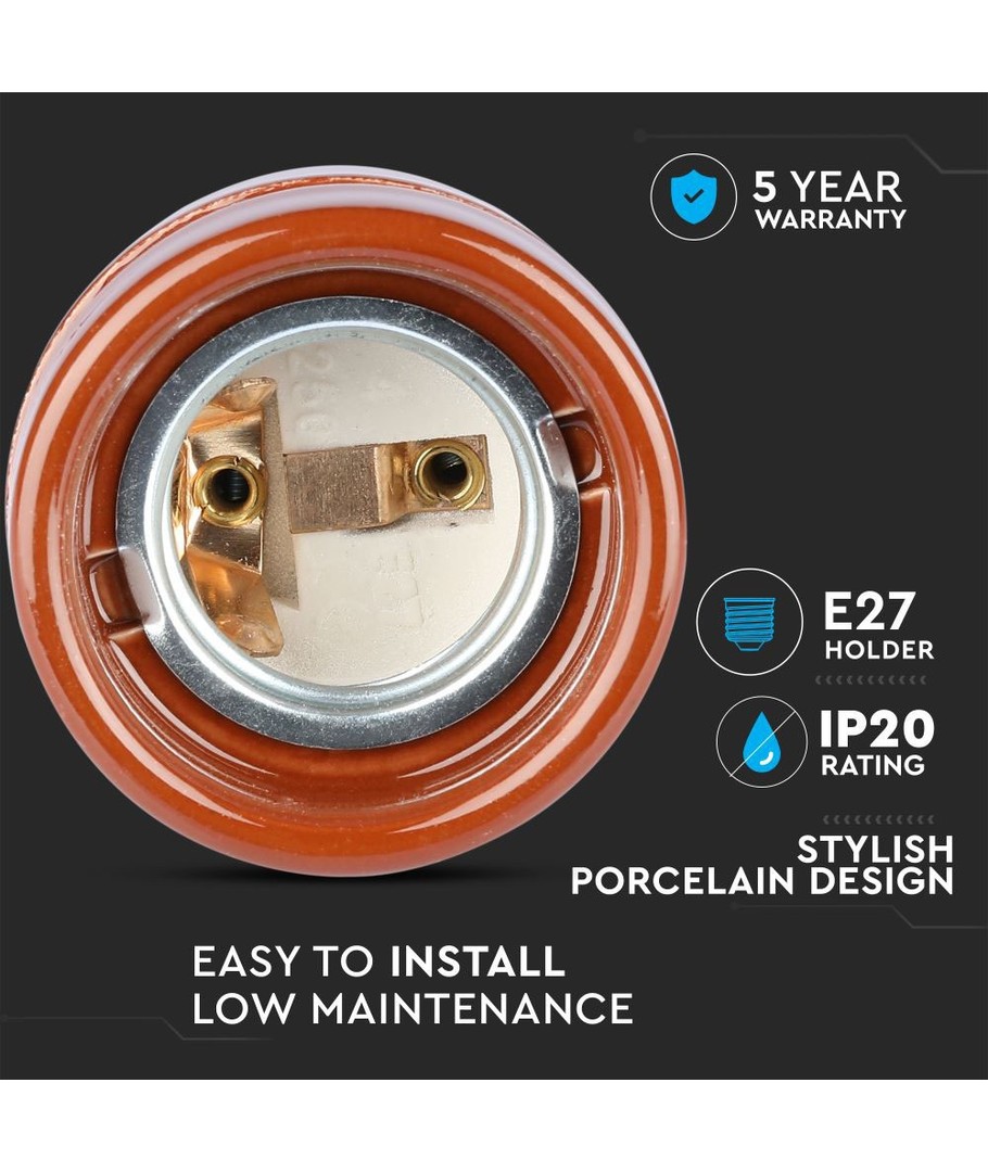 E27 porseleinen fitting, bruin - Max 60W, Ø4,7 x 6,4 cm, IP20 binnen V-TAC Uitklappen