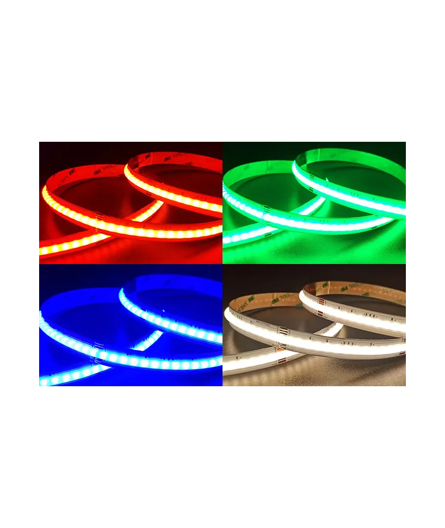 COB LED zonder zichtbare afstand tussen de LED-dioden. Dit zorgt ervoor dat het licht als een ononderbroken streng verschijnt.