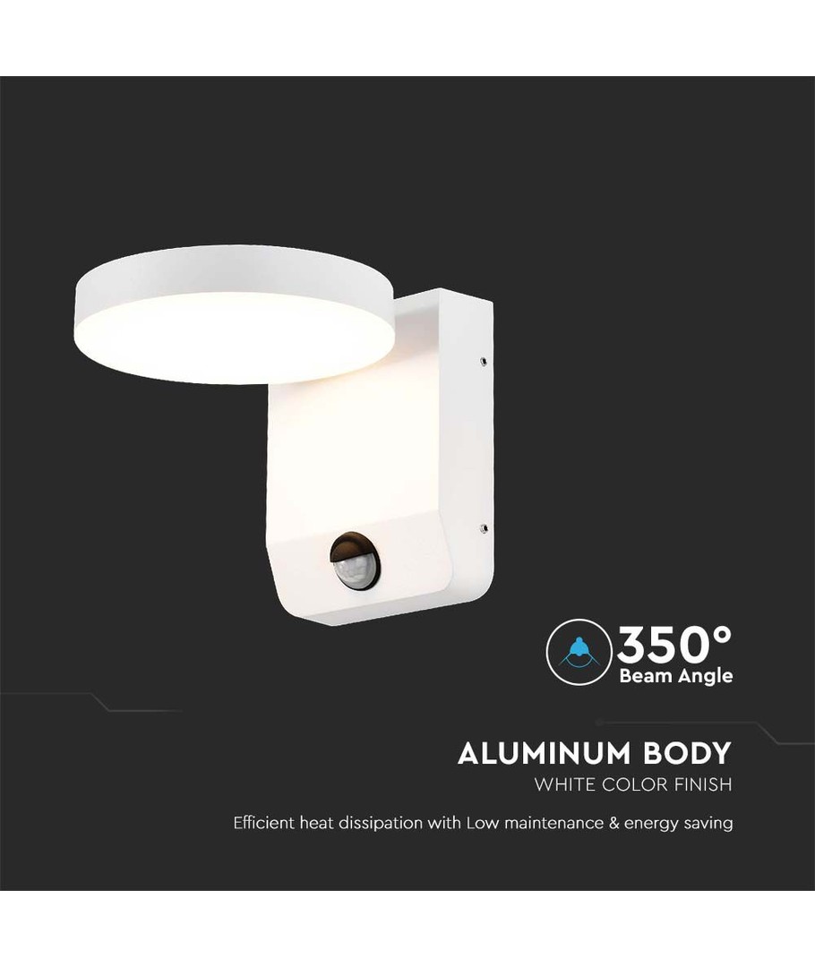 17W Ronde LED wandlamp met sensor - IP65, 2480lm, wit, PIR bewegingssensor, 4000K V-TAC Uitklappen