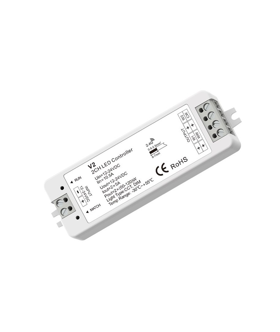 Bedien 12V, 24V, 230V & dimmen, CCT, RGB – alles met dezelfde afstandsbediening.