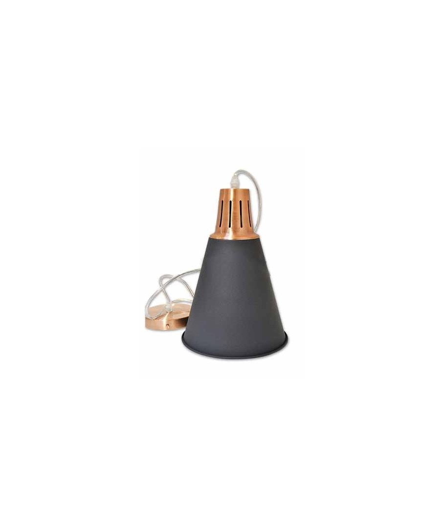 Mooi en eenvoudige hanglamp in de kleur zwart met koper aan de bovenkant.