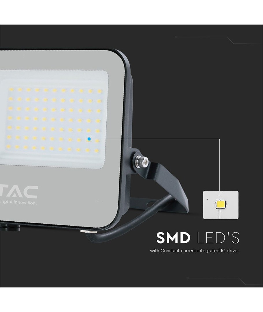 De veelzijdige V-Tac 100W LED schijnwerper is een werklamp ontworpen om extreem hoge lichtopbrengst en energie-efficiëntie te leveren. Met een lichtsterkte van 18500 lumen en een efficiëntie van 185LM/W, is deze schijnwerper ideaal voor een breed scala aan verlichtingsbehoeften, of het nu gaat om bouw, decoratie of gespecialiseerde gebieden zoals spuitcabines en aquaria.