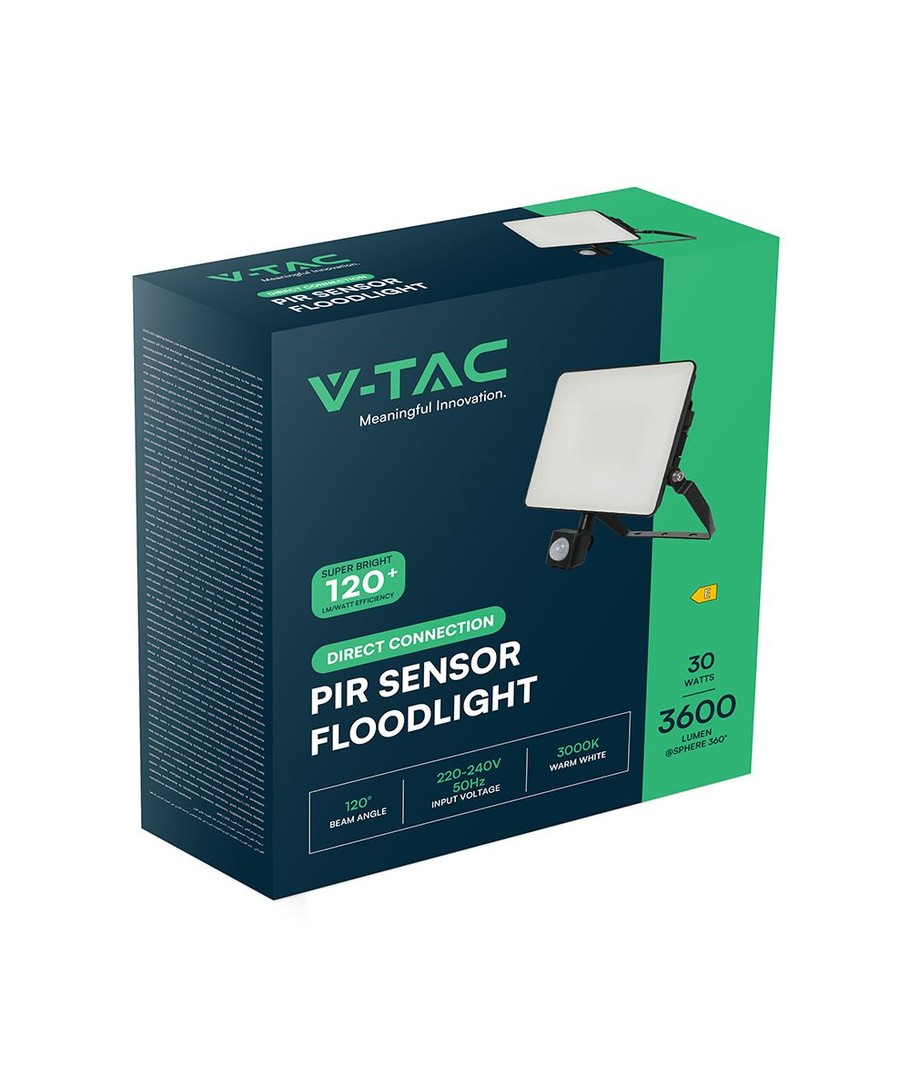 V-Tac 30W LED sensor schijnwerper is een efficiënte en eenvoudig te installeren verlichtingsoplossing die hoge helderheid combineert met energiebesparing.