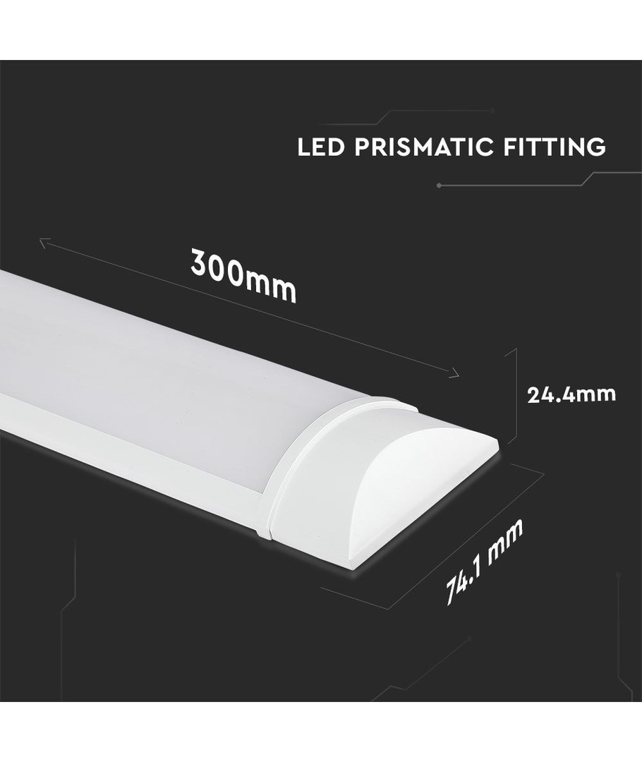 De compacte afmetingen van het product zijn 300 x 24 x 74 mm, en het heeft de beschermingsklasse IP20, wat betekent dat het niet waterbestendig is. Daarnaast is er een geïntegreerde lichtbron en een 5 jaar fabrieksgarantie, wat extra zekerheid biedt voor de duurzaamheid en efficiëntie van de investering.