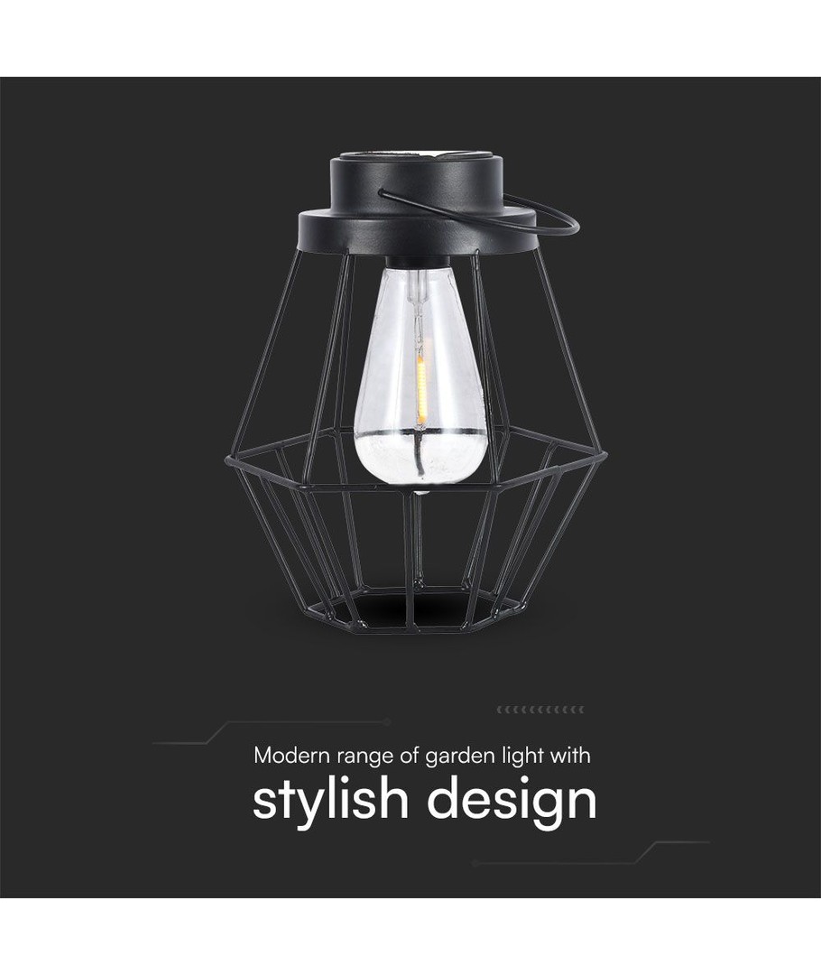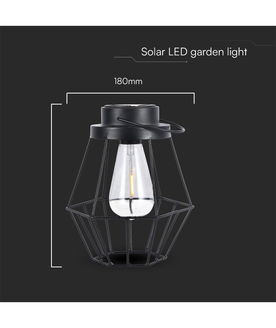 Hangende LED lantaarn op zonne-energie, 0,5W - Zwart metaal, vintage design, 2700K, IP44, 1.2V oplaadbaar, met hengsel V-TAC Uitklappen