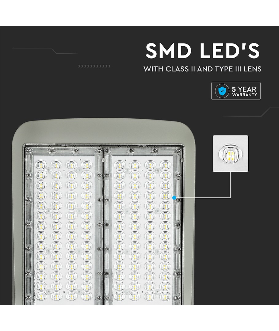 Uitgerust met Samsung LED-chips, garandeert het product hoge kwaliteit en betrouwbaarheid met een levensduur tot 30.000 uur. De professionele en betrouwbare driver in combinatie met efficiënte koeling draagt bij aan de lange levensduur. De straatlamp is ook dimmenbaar, waardoor de lichtsterkte naar behoefte kan worden aangepast.
