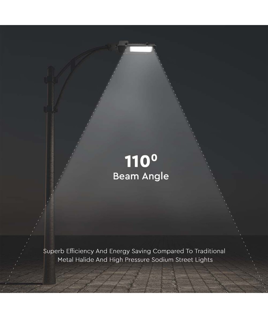 Ervaar uitstekende verlichting met onze LED-straatlamp, ontworpen om 100W lichtsterkte te leveren en presteert met een indrukwekkende 10.000 lumen. Met een spreiding van 110 graden zorgt deze lamp voor een gelijkmatige lichtverdeling, waardoor hij geschikt is voor zowel industrieel als openbaar gebruik.