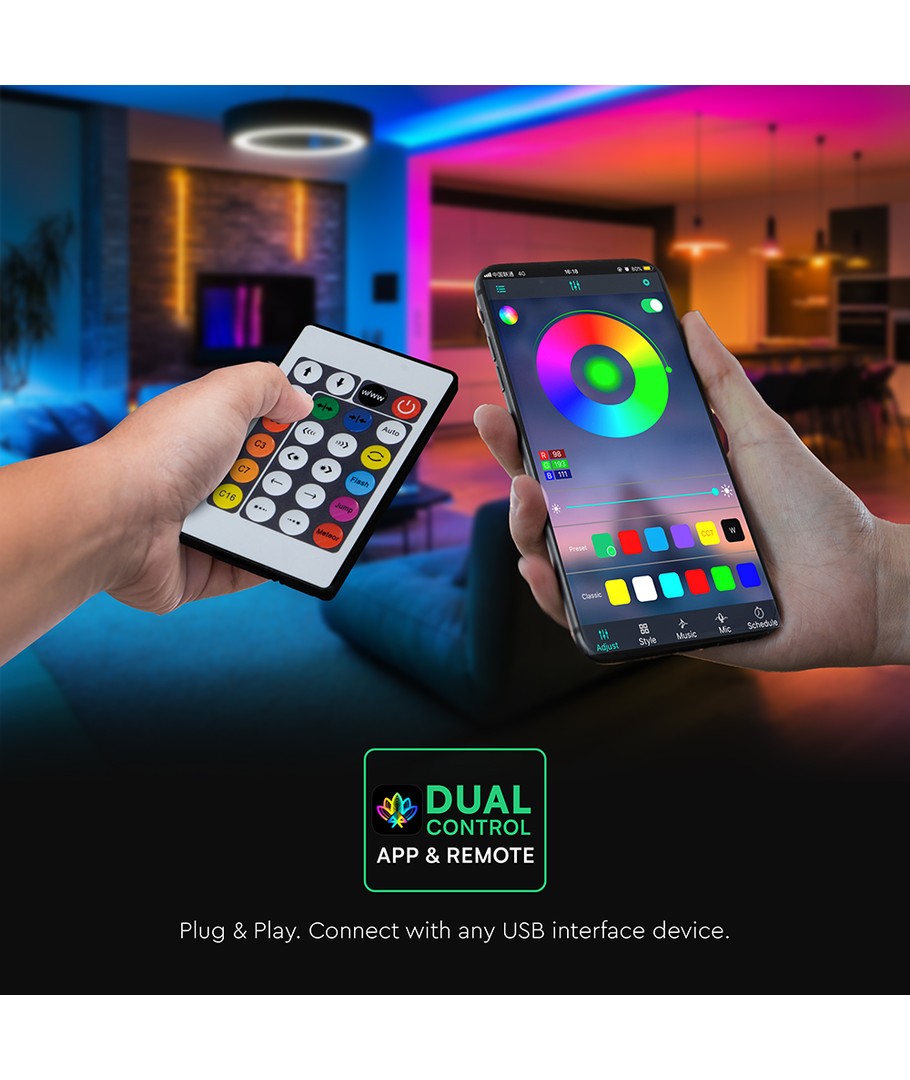 Beleef een kleurrijke verlichtingservaring met onze 5m RGBIC Neon Flex LED set, die flexibele en dynamische verlichting biedt voor elke ruimte via een USB-aansluiting.