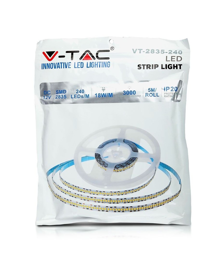 De V-Tac 18W/m LED strip staat bekend om zijn hoge lichtsterkte en gelijkmatige lichtverdeling dankzij de royale stralingshoek van 120 graden. Dit zorgt ervoor dat het licht efficiënt in de ruimte wordt verspreid, wat het ideaal maakt voor zowel primaire als secundaire verlichting.