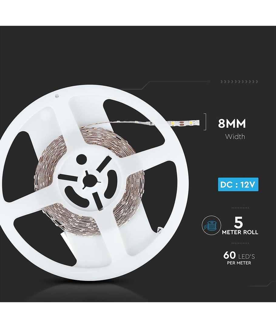 Ervaar de flexibele en veelzijdige 12V ZigZag 5W/m LED strip, ontworpen om aan uw verlichtingsbehoeften te voldoen met een lengte van 5 meter en 60 LED's per meter. Deze LED strip biedt een stijlvolle en functionele verlichting voor elke ruimte.