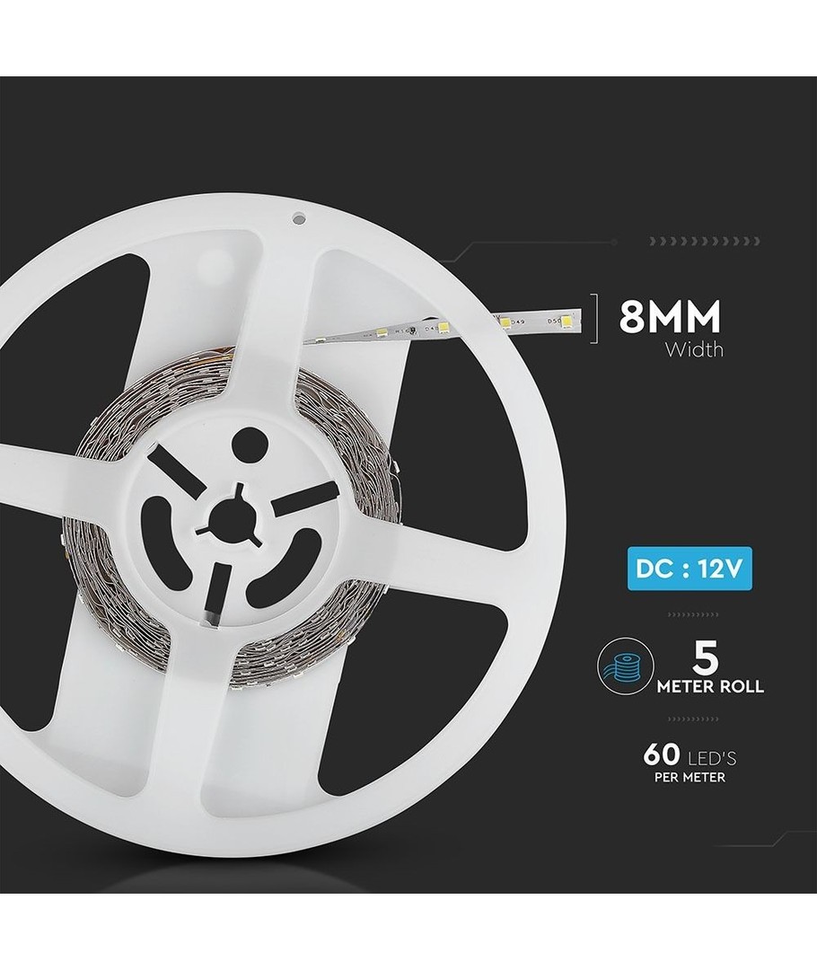 Met een lengte van 5 meter en 60 LED's per meter is deze strip zeer veelzijdig en kan hij op precies de gewenste lengte worden geknipt, waardoor hij ideaal is voor diverse verlichtingsprojecten, van accentverlichting tot creatieve lichtinstallaties.