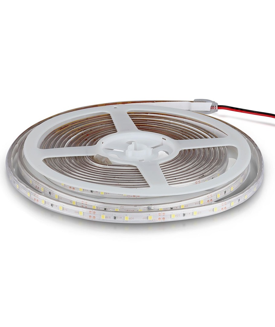 Ervaar flexibele en energiezuinige verlichting met onze 5m spatwaterdichte LED strip, perfect voor zowel binnen- als buitengebruik.