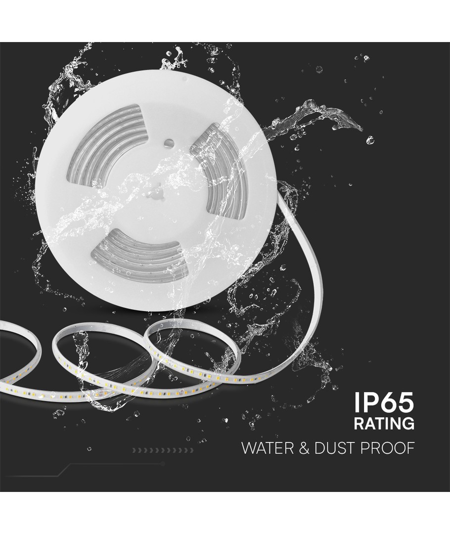 Ontworpen voor flexibiliteit meet de strip slechts 8 mm in breedte, zodat hij gemakkelijk in verschillende omgevingen kan worden geïntegreerd zonder opdringerig te zijn. Met een beschermingsgraad van IP65 is hij perfect voor buitengebruik, omdat hij waterdruppels en regen probleemloos kan weerstaan.