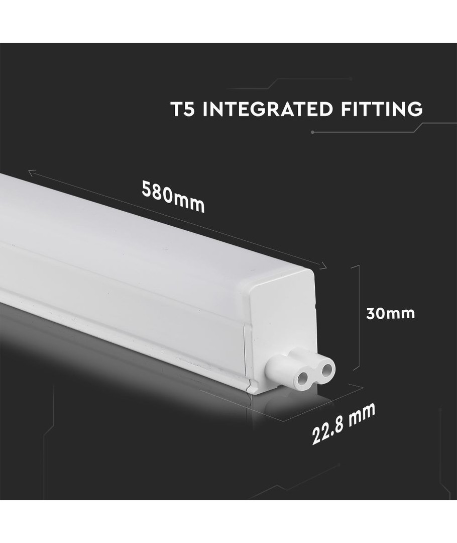 Dit compacte armatuur meet 580 x 30 x 22,8 mm en is ontworpen voor eenvoudige installatie in verschillende omgevingen. Het wordt aangesloten op een 230V voeding en heeft een geïntegreerde lichtbron. Let op dat met een IP20-classificatie het niet waterbestendig is en daarom alleen in droge ruimtes gebruikt moet worden.