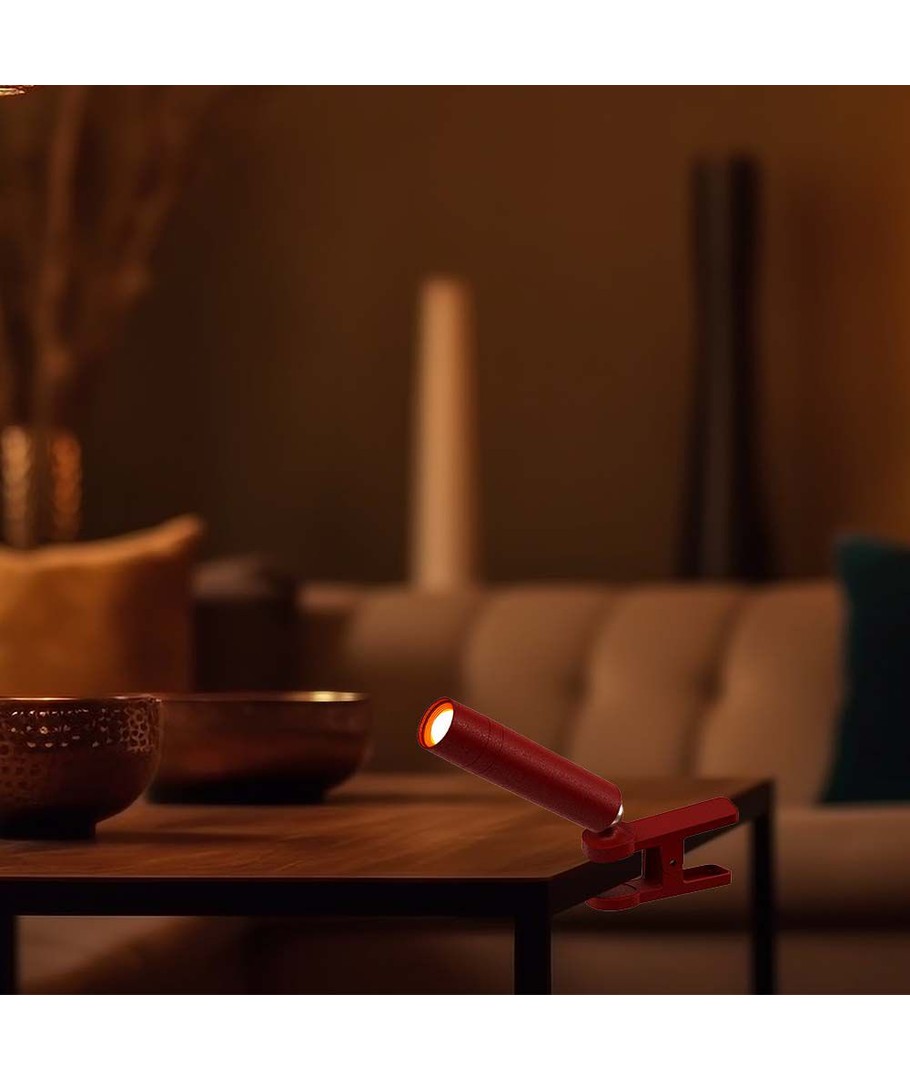 De magnetische basis maakt het gemakkelijk om de lamp precies te plaatsen waar u wilt. Met het robuuste ontwerp en een opvallende rode behuizing wordt de tafellamp een decoratieve toevoeging aan elke ruimte.