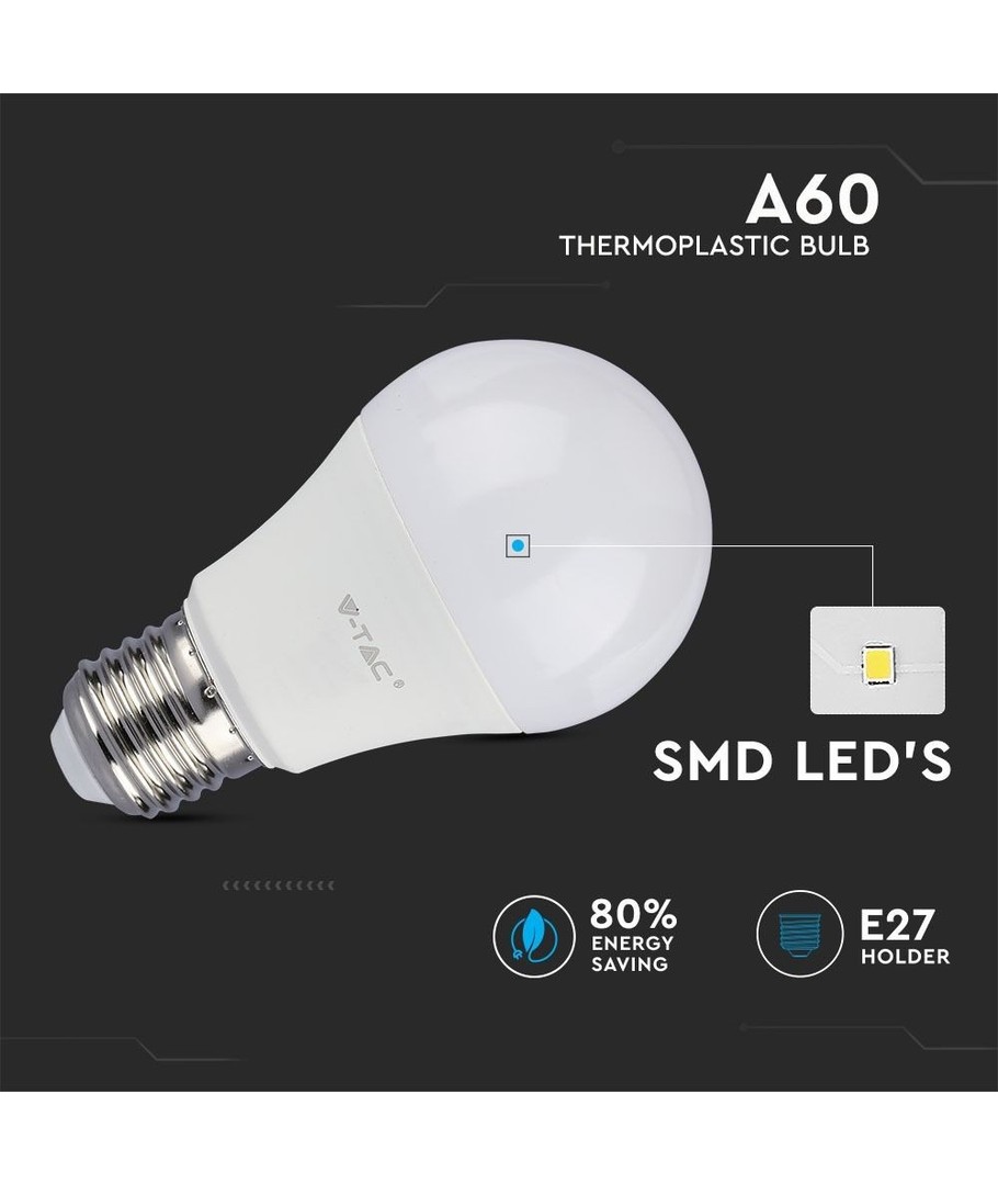 Ervaar moderne verlichting met de V-Tac 9W LED lamp. Deze lamp is de perfecte keuze voor wie het energieverbruik wil verminderen zonder in te leveren op lichtsterkte. Met een vermogen van 9W kan hij gemakkelijk een traditionele 60W lamp vervangen, wat het een slimme en economische oplossing voor thuis maakt.