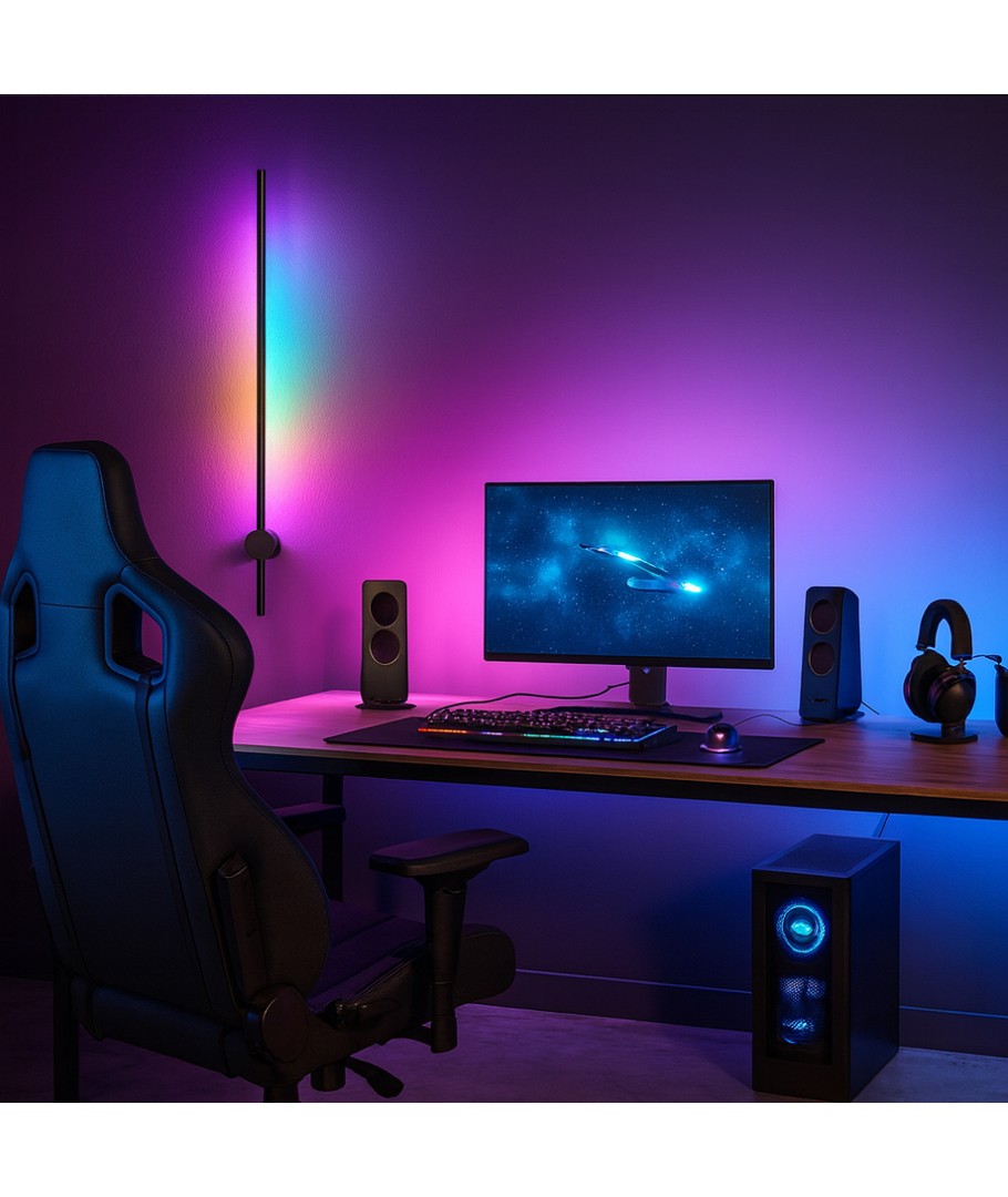 Deze 80 cm RGBIC wandlamp is ontworpen om je gaming- of streaming-setup naar een hoger niveau te tillen. Met dynamische kleuren, reactieve effecten en totale controle via app en afstandsbediening krijg je een lamp die bij je stijl past – of je nu gamet, films kijkt of je setup laat zien.