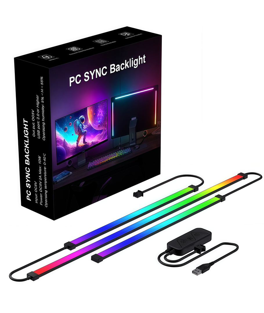 Breng nieuw leven in je setup met RGBIC LED Achtergrondverlichting voor PC-scherm, die het licht in realtime synchroniseert met je gameplay of muziek. Perfect voor gamers die een intensere, kleurrijkere en sfeervollere ervaring voor het scherm willen.