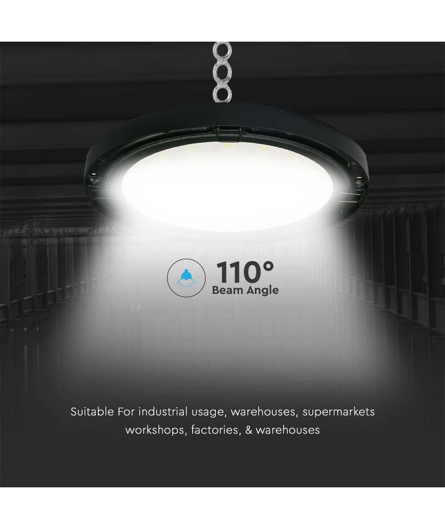 Met een efficiëntie van 120 lumen per watt biedt deze LED highbay niet alleen een zuinige werking, maar ook langdurige stabiliteit. Dit is de verlichting die prestaties combineert met duurzaamheid, of u het nu nodig heeft in een magazijn, werkplaats of andere industriële omgevingen.