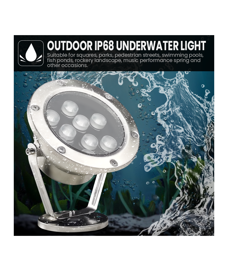 De spot heeft een IP68-classificatie, wat garandeert dat hij volledig waterdicht is en tot 1 meter diepte onder water kan worden ondergedompeld zonder risico op schade. Dit maakt hem ideaal voor gebruik in zowel vijvers als zwembaden, waar betrouwbaarheid cruciaal is.