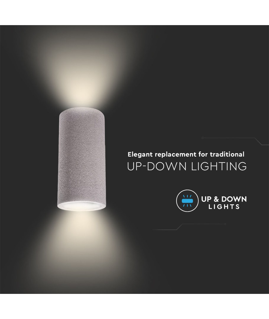 Upgrade je huis met een moderne en minimalistische verlichtingsoplossing. Deze stijlvolle LED beton wandlamp uit de V-Tac Pro serie komt in een lichtgrijze tint die gemakkelijk in elk kamerdecor past. Met nadruk op zowel esthetiek als functionaliteit is deze lamp een perfecte toevoeging voor zowel privé- als professionele omgevingen.