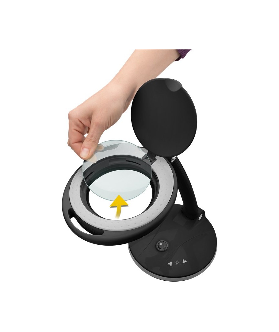 Ervaar de ultieme visuele helderheid met deze LED loeplamp, een ideale oplossing voor taken die precisie en concentratie vereisen. Deze zwarte bureaulamp is ontworpen om hoge lichtsterkte te leveren en tegelijkertijd een bruikbaar en esthetisch aantrekkelijk werkhulpmiddel voor elk bureau te bieden.