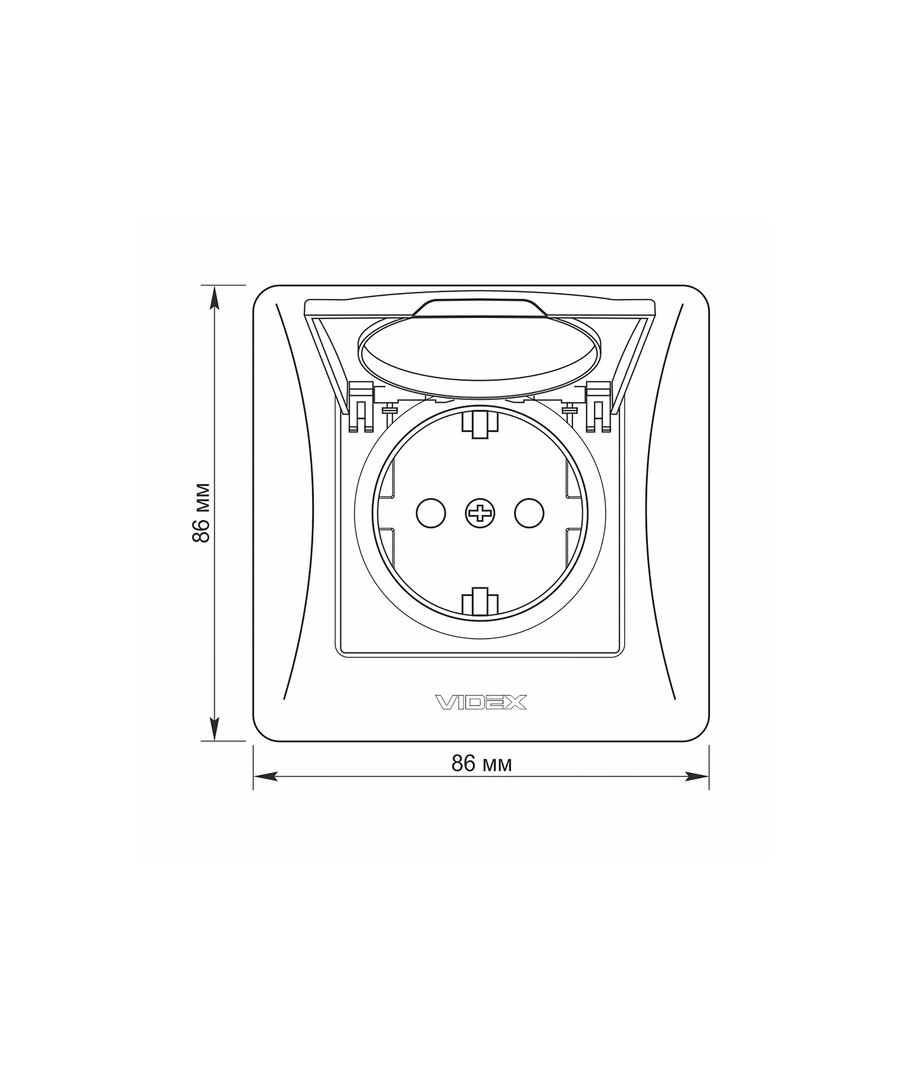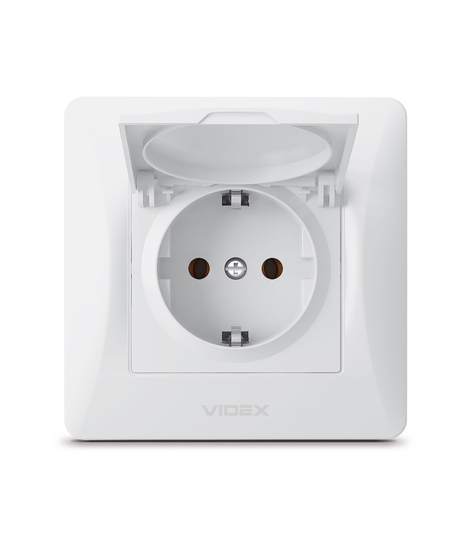 Schuko wandcontactdoos - enkel, met deksel, wit Videx Uitklappen