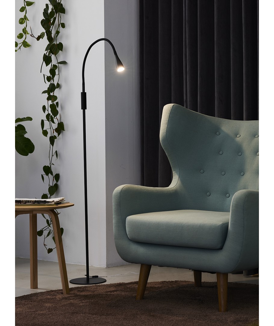 Mooie zwarte LED vloerlamp van Nielsen Light genaamd Twist in een mooi en eenvoudig design. De lamp heeft een ingebouwde Touch dimmer op de stang, waardoor deze eenvoudig te bedienen is. Aan/uit bevindt zich in dezelfde schakelaar als de dimmer.